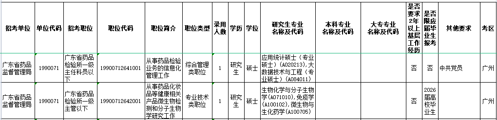 其中广东省药品检验所招录2名公务员